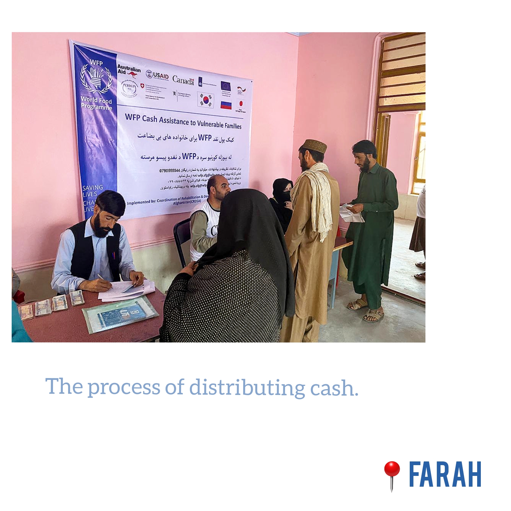 Under the CRDSA CBT project in Farah province, 15097 most vulnerable HHs have been verified and registered into the program. So far, 9935 HHs received cash and the amount is 4000 AFs / per month/per HH.
