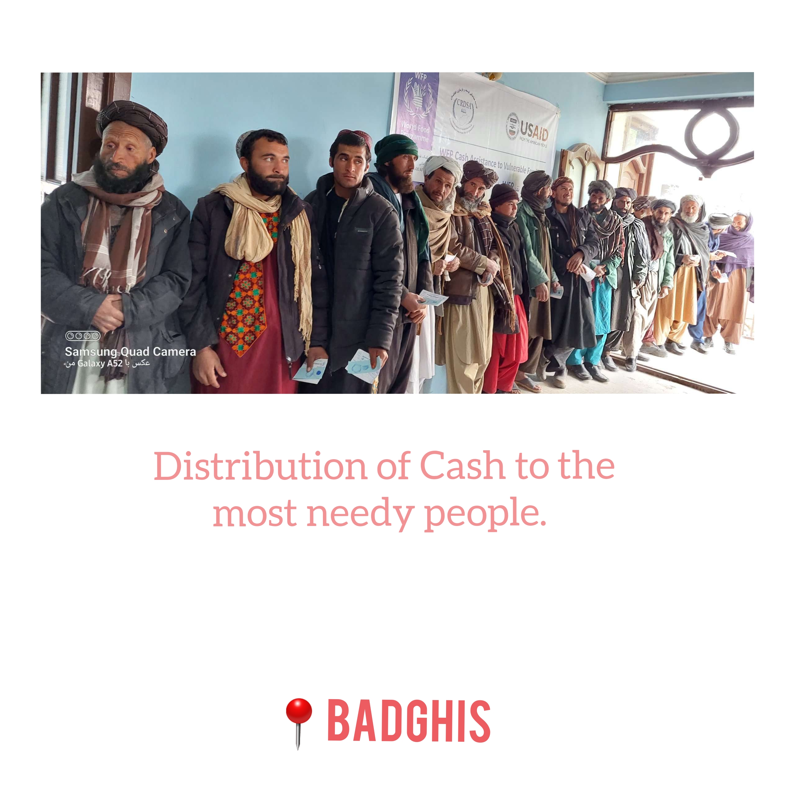 Under CRDSA CBT project in Badghis province funded by WFP 5636 most vulnerable Households who have no source of income have been verified to the program. So far, 5570 HHs have received cash and the amount is 6100 AFs /per month/ per HH.